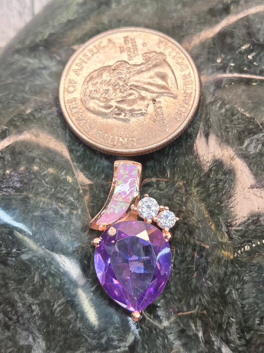 Pink Opal Amethyst Cubic Zirconia Pendant