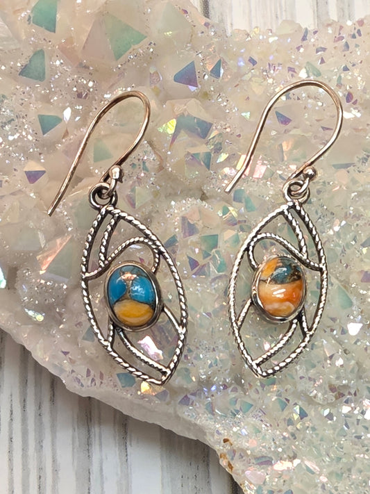 Spiny Oyster Turquoise Sterling Silver Hook Earrings