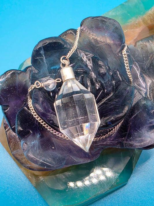 Faceted Clear Quartz Diamond Shaped Pendulum