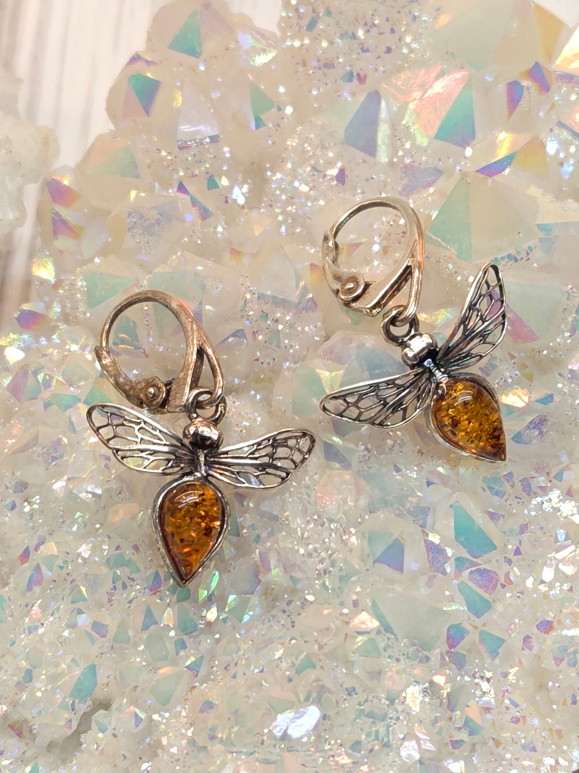 Inspired by nature’s tiniest alchemist, these bee earrings feature genuine Baltic or Polish amber bodies suspended from sterling silver hooks. Amber is celebrated for its soothing warmth, emotional balance, and cleansing properties. The bee design represents community, productivity, and the sweetness of life. These charming earrings add a playful yet elegant touch to your look and bring amber’s nurturing energy wherever you go.