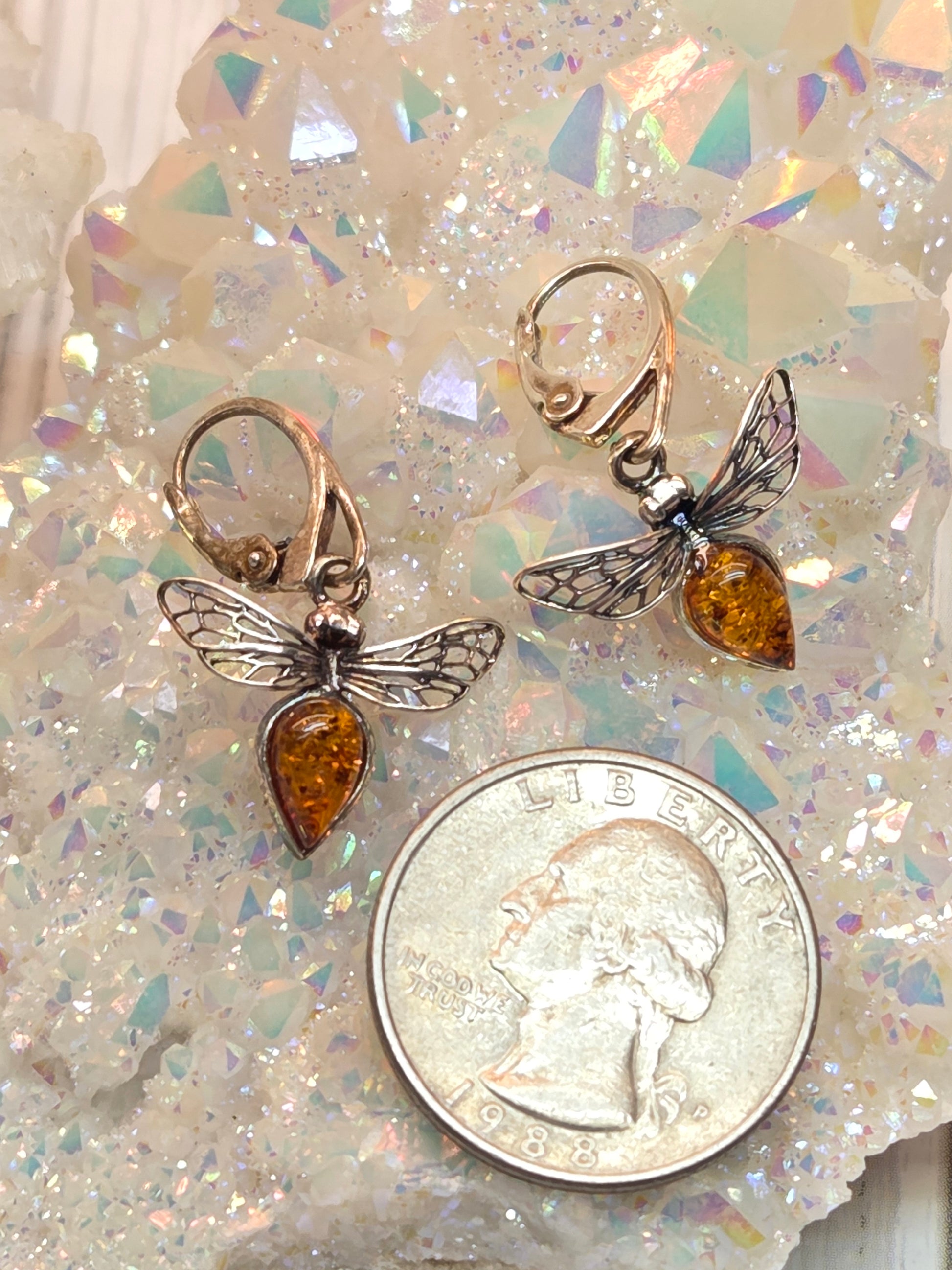 Baltic Amber Bee Hook Earrings