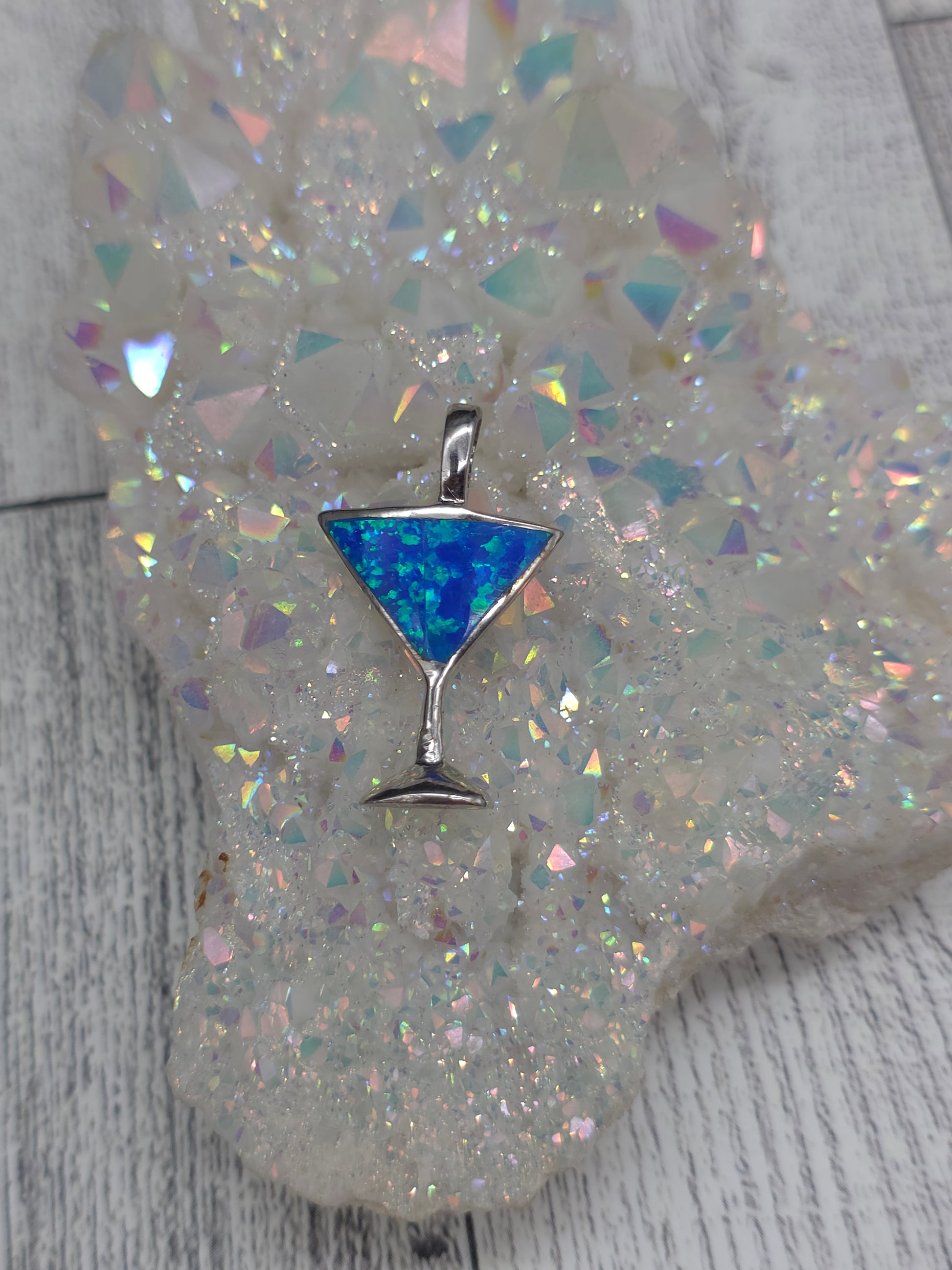 Blue Opal Wine Glass Pendant