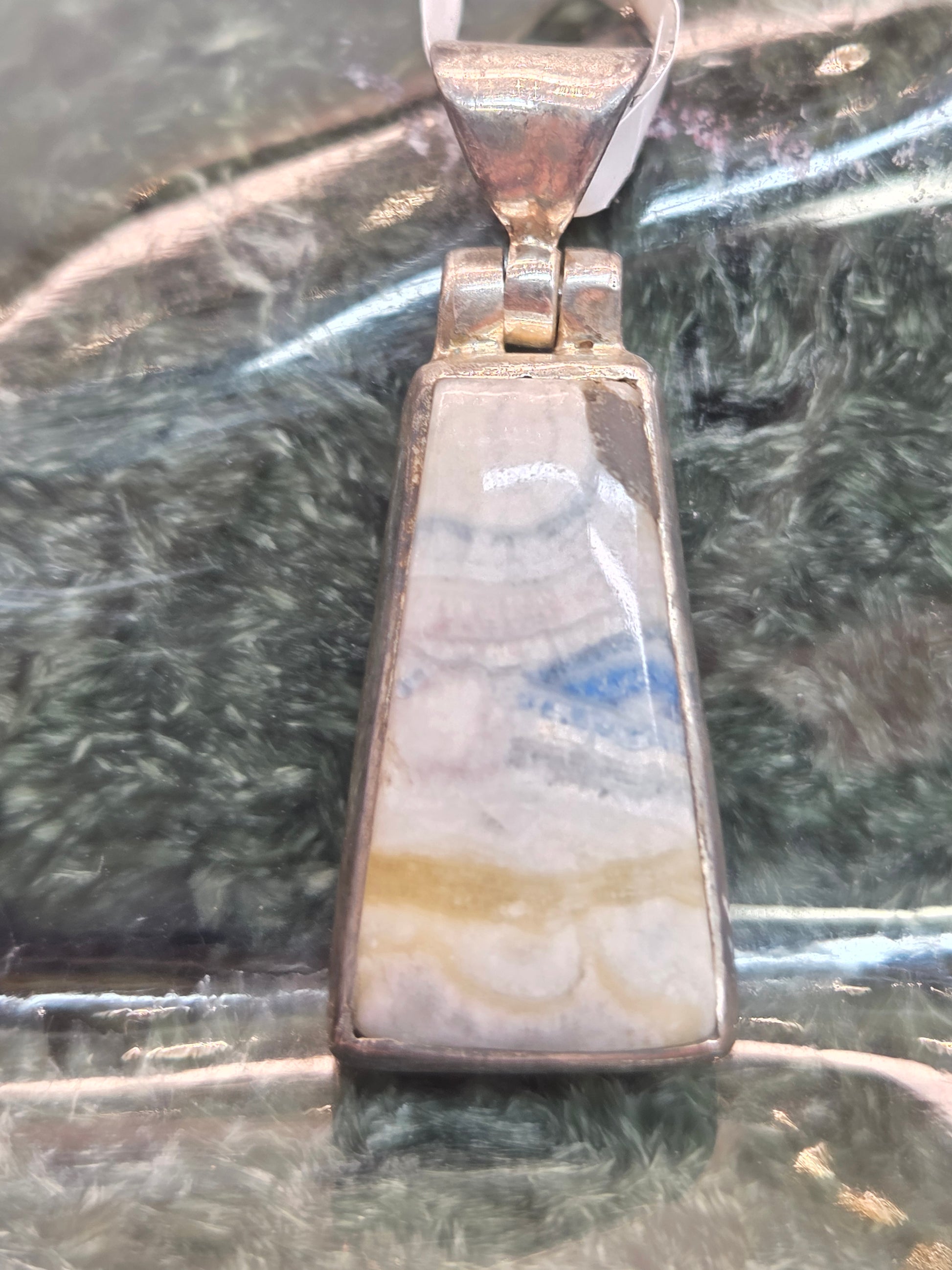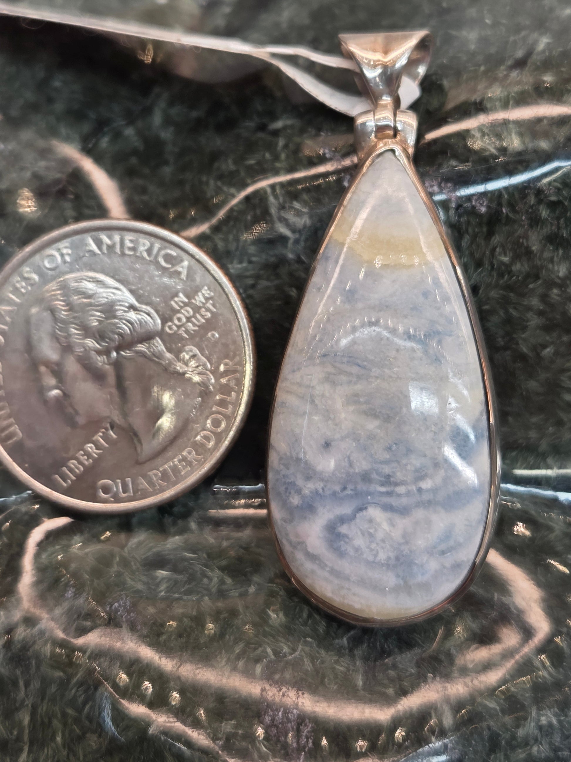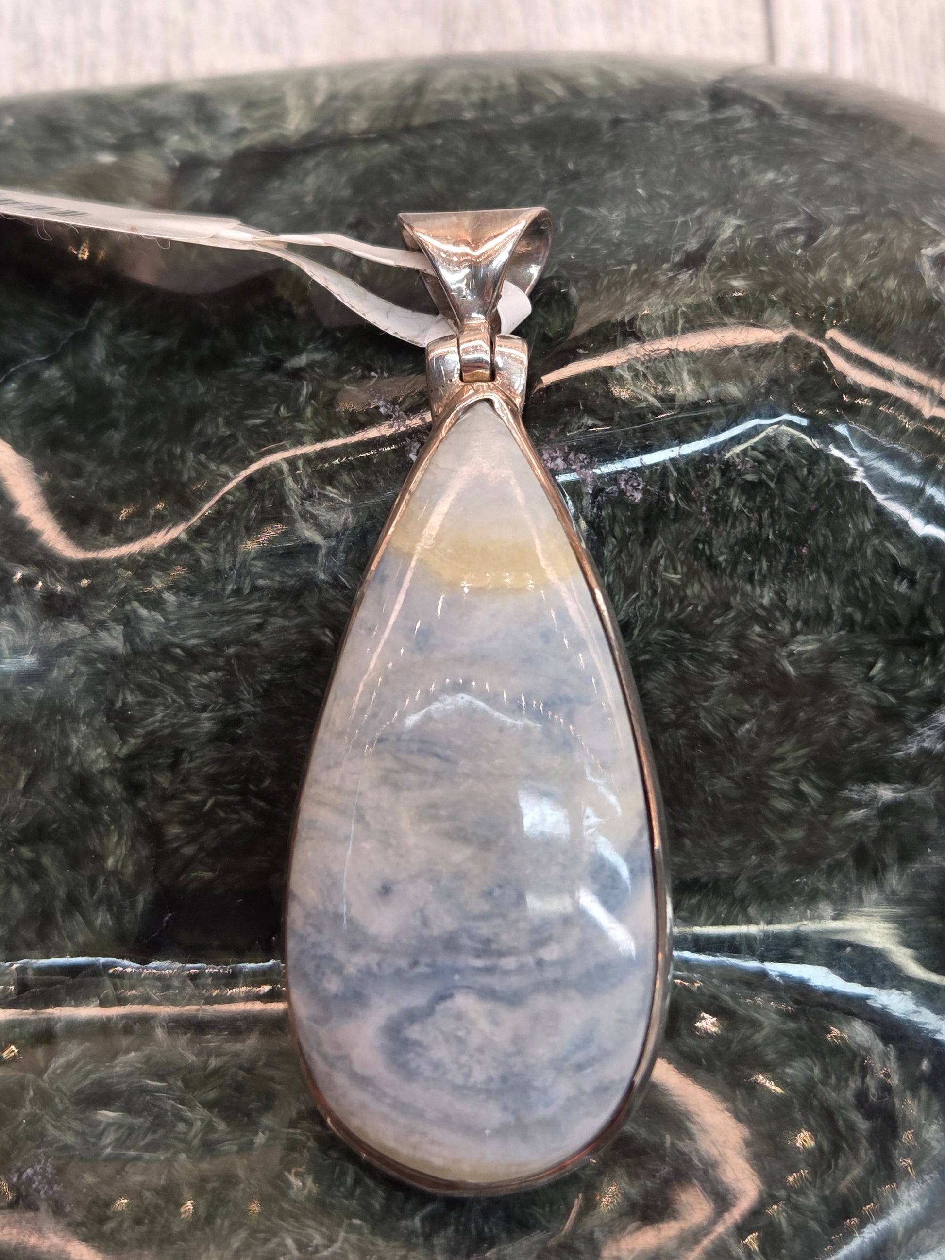Soothing and spiritually supportive, these Blue Scheelite pendants offer a harmonious blend of grounded energy and higher perspective. Blue Scheelite is a unique combination of dolomite and blue calcite, resulting in a stone that not only radiates calm through its soft, sky-blue hues but also holds deep metaphysical resonance.
