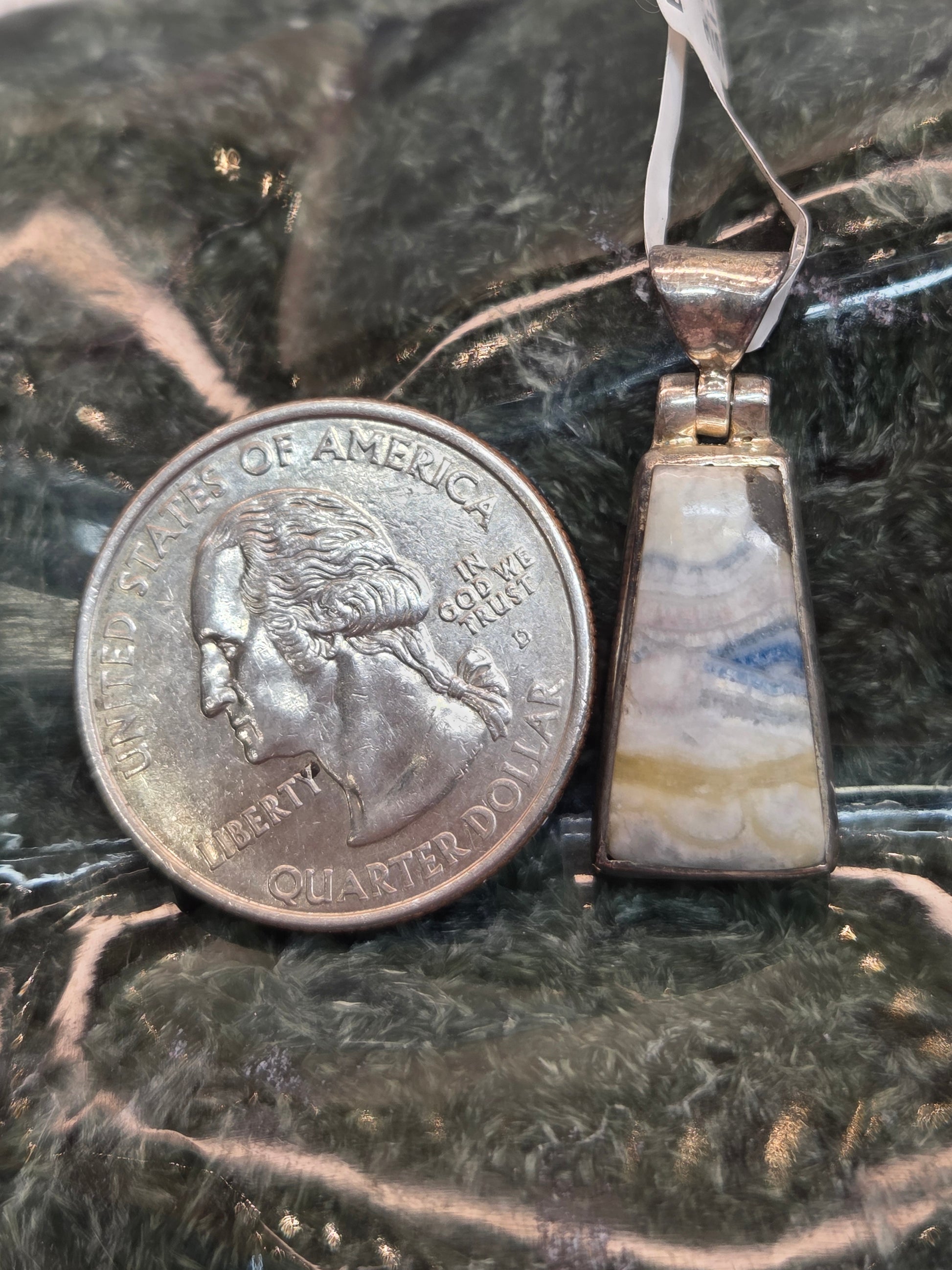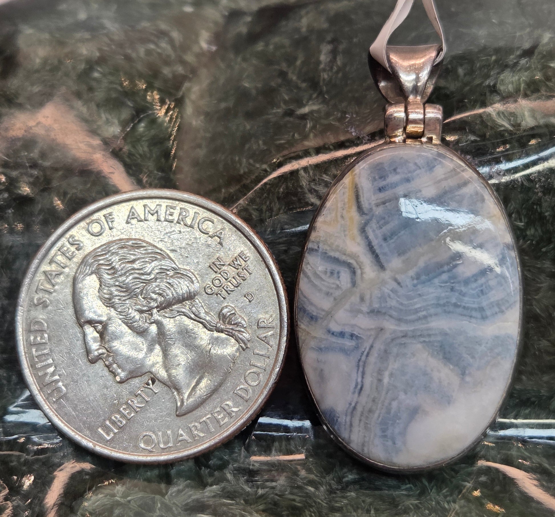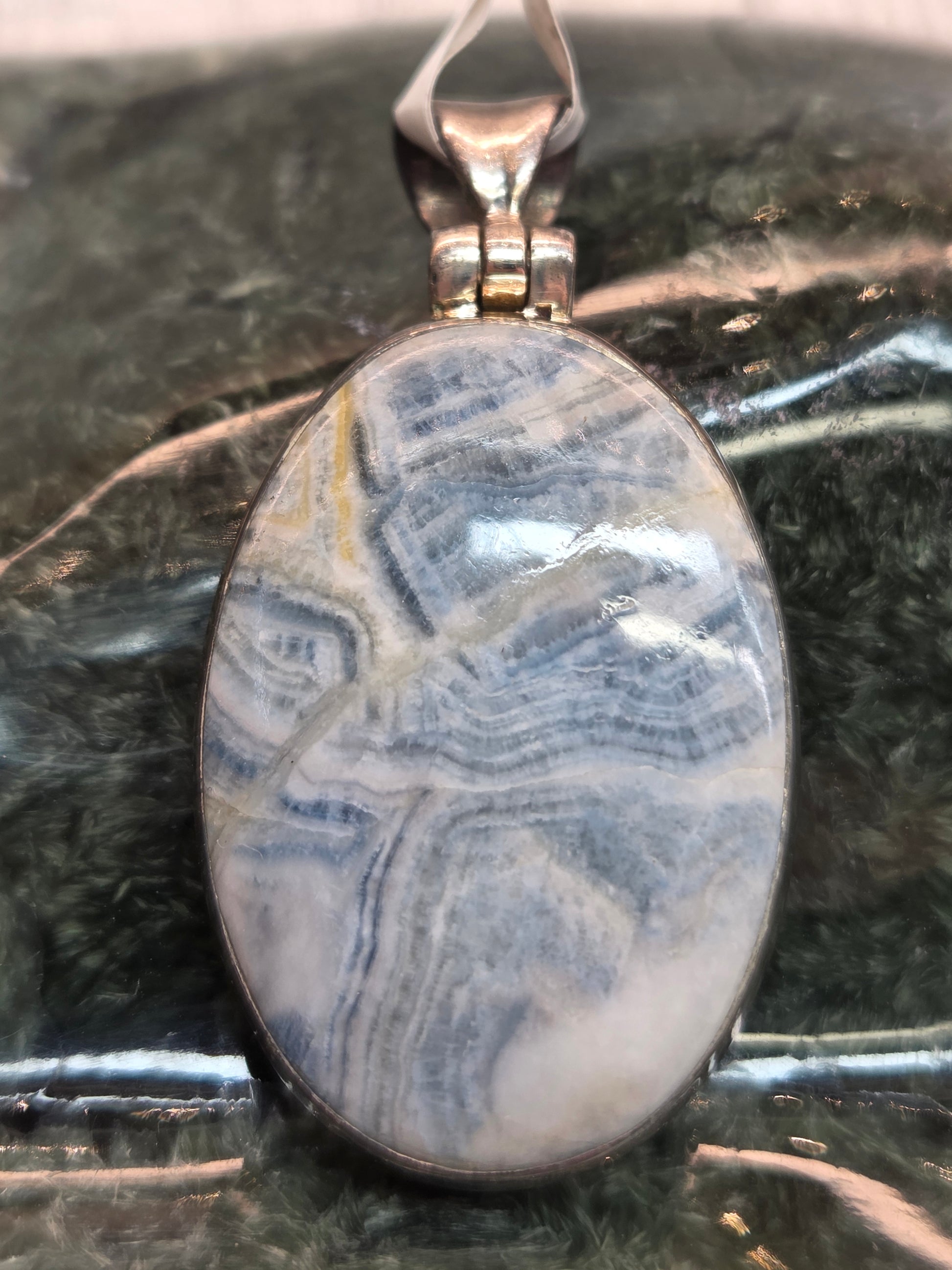 Soothing and spiritually supportive, these Blue Scheelite pendants offer a harmonious blend of grounded energy and higher perspective. Blue Scheelite is a unique combination of dolomite and blue calcite, resulting in a stone that not only radiates calm through its soft, sky-blue hues but also holds deep metaphysical resonance.