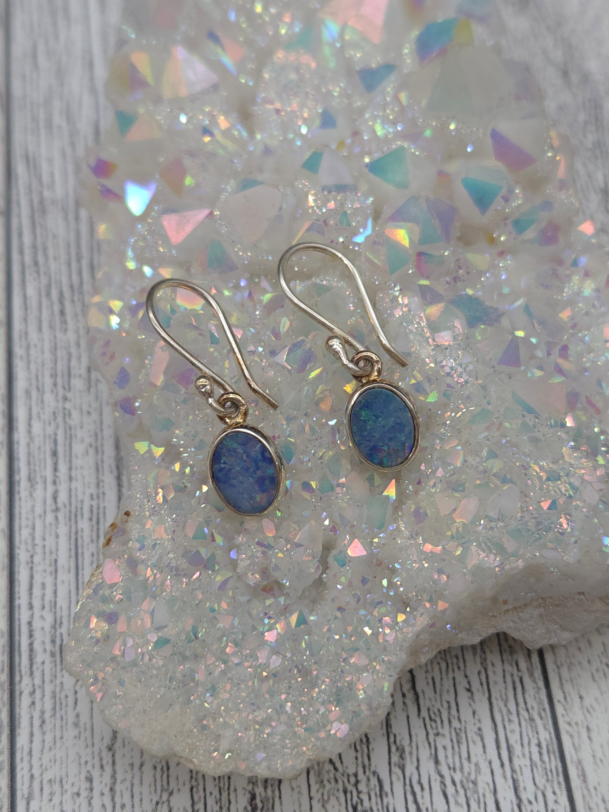 These stunning hook earrings feature oval blue boulder opals set in a sleek and elegant sterling silver design. The rich, shifting hues of the opal flash brilliant blues, greens, and hints of purple capturing light in a way that feels magical and alive. Blue boulder opal is known for its calming, intuitive energy and its ability to enhance clarity, emotional insight, and spiritual connection. Lightweight and luxurious, these earrings are a beautiful statement piece that brings both natural beauty and deep energetic support to your everyday style.