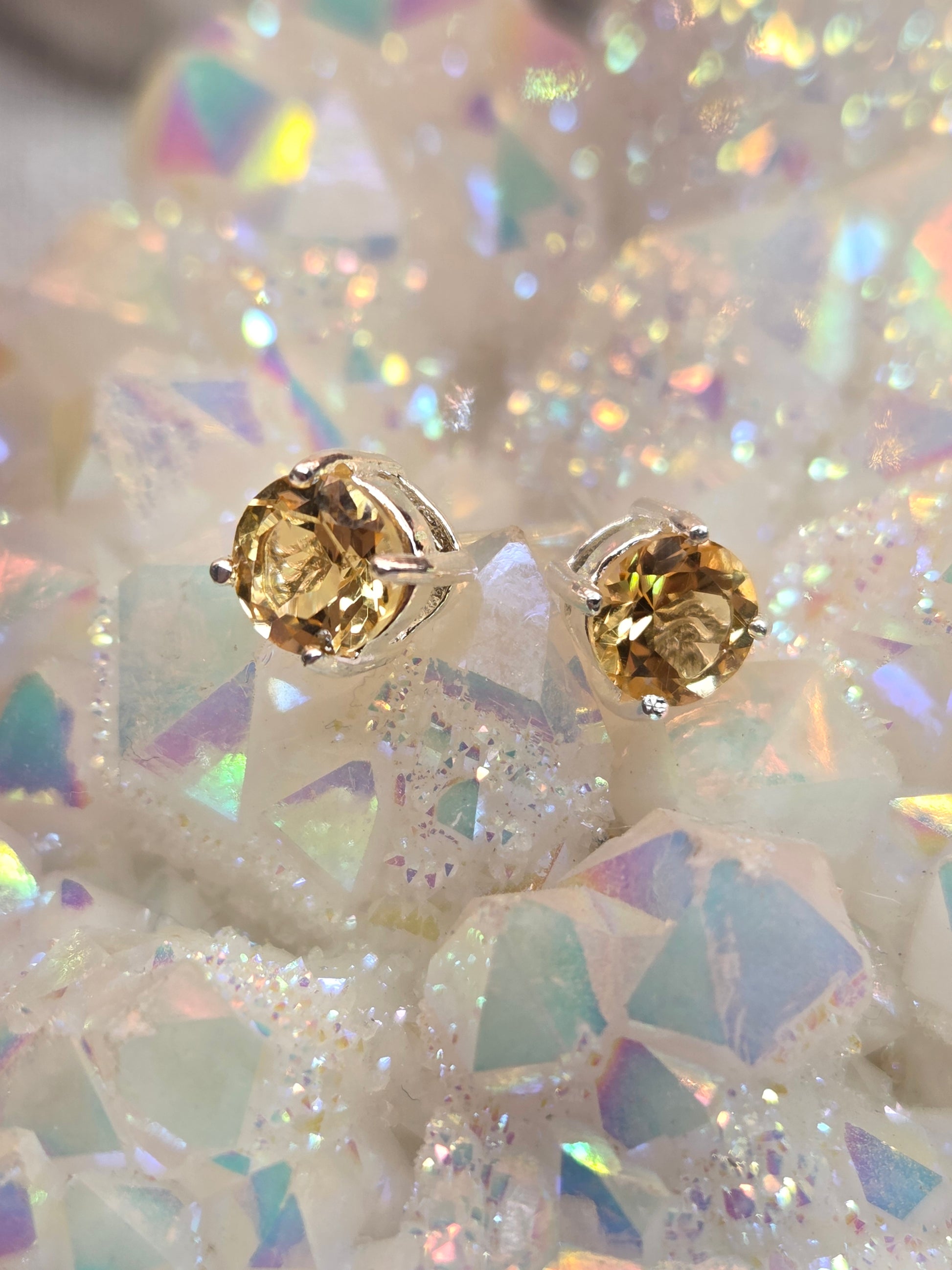 These faceted round citrine post earrings are set in sterling silver and radiate a warm, golden glow. Citrine is known as a stone of abundance and manifestation, often used to support personal growth, mental clarity, and a healthy sense of optimism. Its energy is associated with the solar plexus chakra, which governs confidence, motivation, and flow.