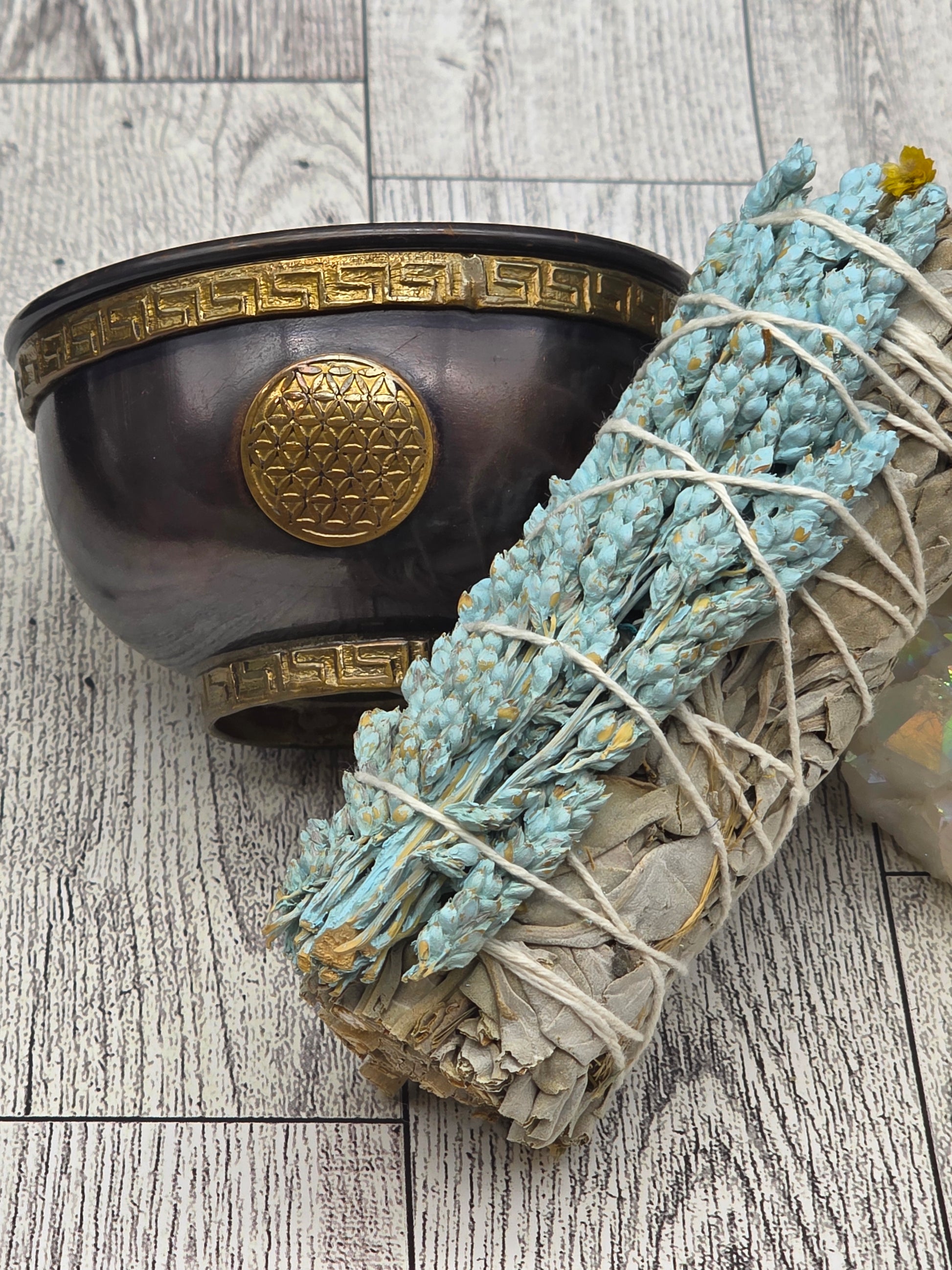 This listing is for one intuitively chosen bowl and one sage bundle similar to the ones in the photos.