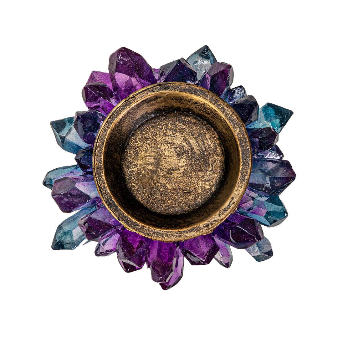 This stunning crystal-inspired holder brings the shimmer and texture of natural cluster formation into your space, blending rich blue and violet tones with a high-quality, sculptural finish. Made from durable cold cast resin, it offers the look of real crystal with added strength and versatility.