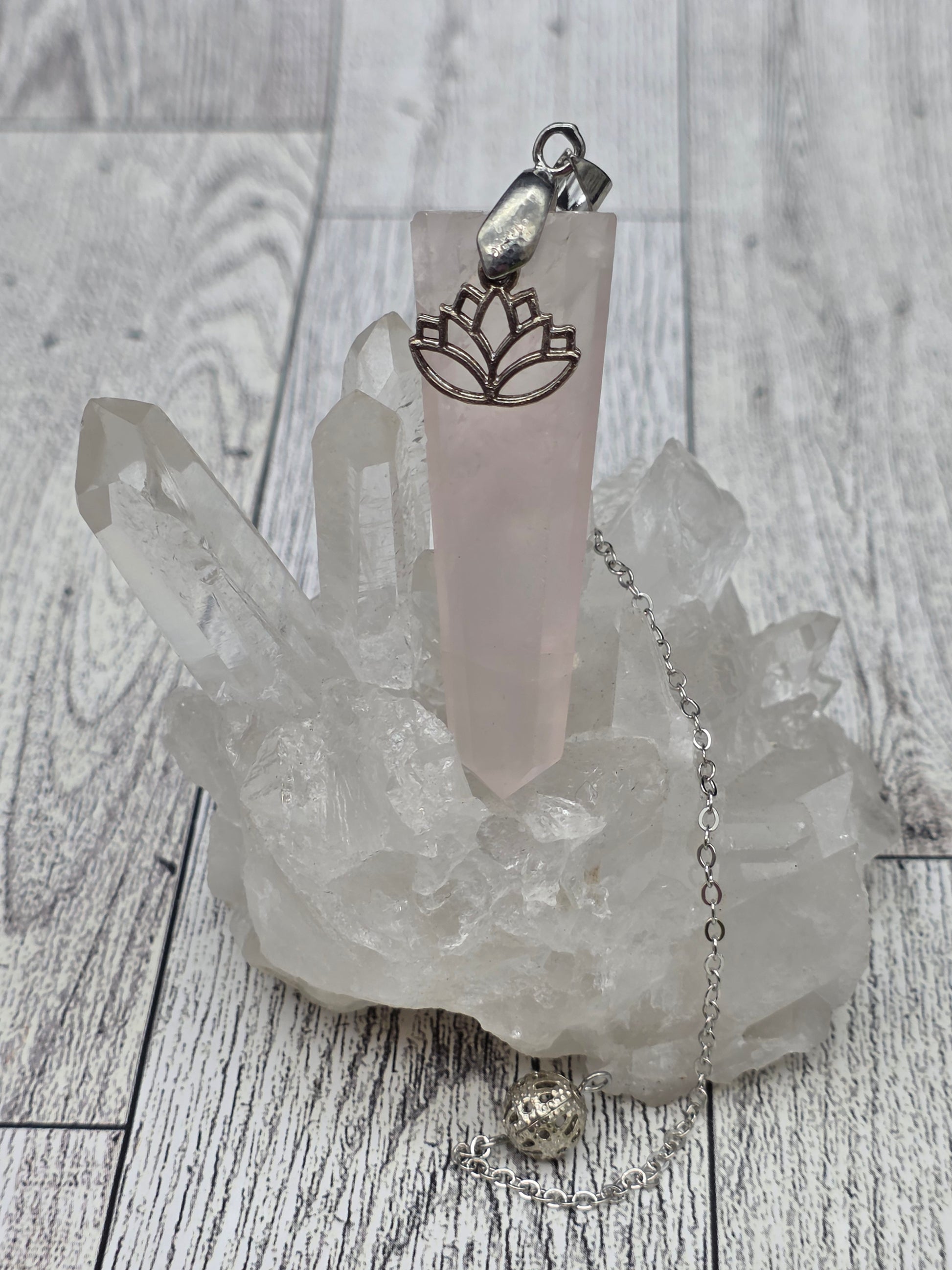 This elegant crystal‑point pendulum features a delicate lotus charm a beautiful symbol of growth, remembrance and transformation. Each piece allows you to tune into your inner wisdom and trust the flow that carries you forward.