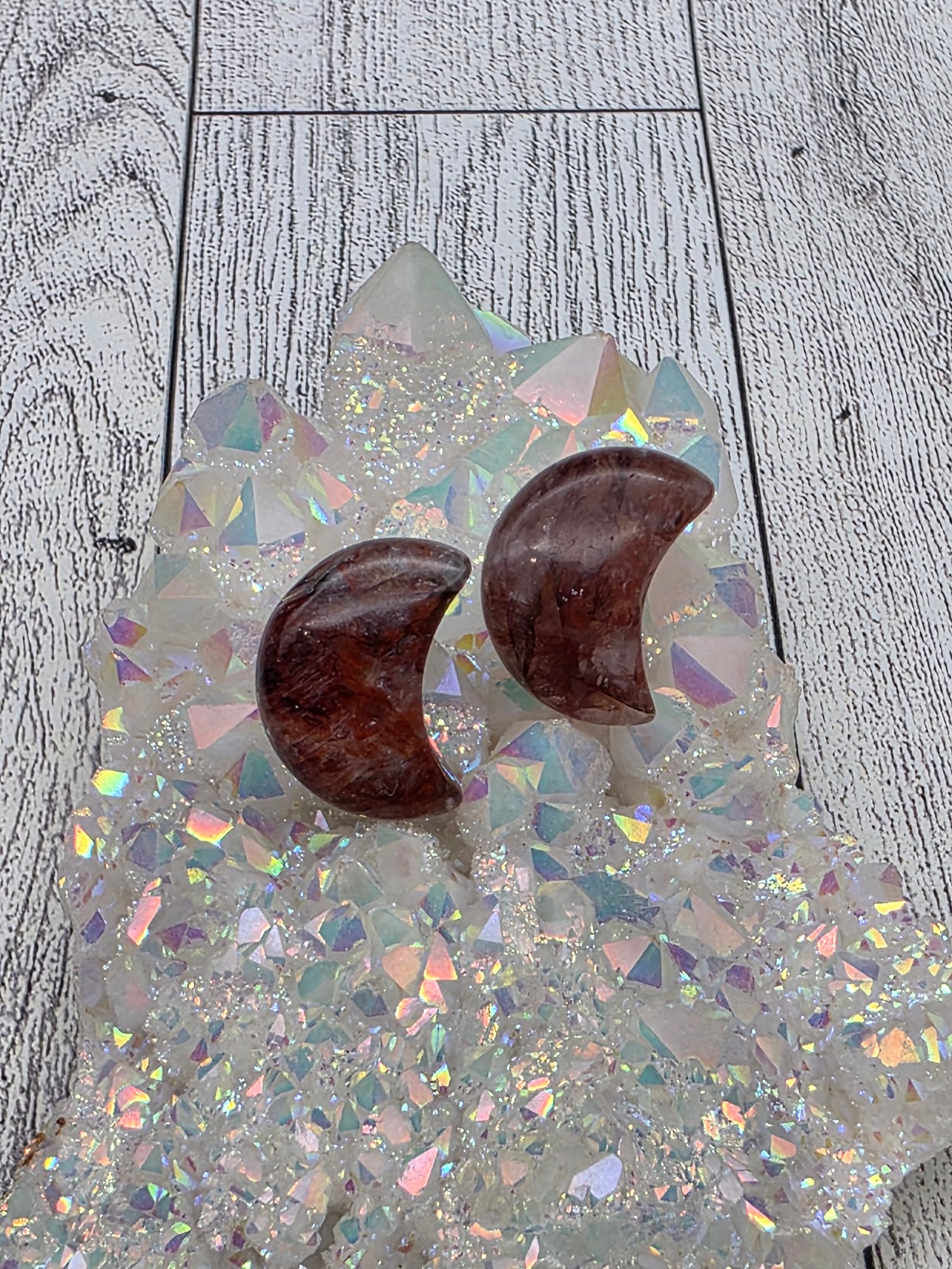 Introducing our Moon‑Crystal Post Earrings, a refined pair designed for flow and connection. Each earring features a polished moon‑shape crystal set that rests beautifully on the ear, carrying intention close to your auric field. Choose from four stunning stone options: Fluorite, Fire Quartz, Strawberry Quartz, and Sunstone.