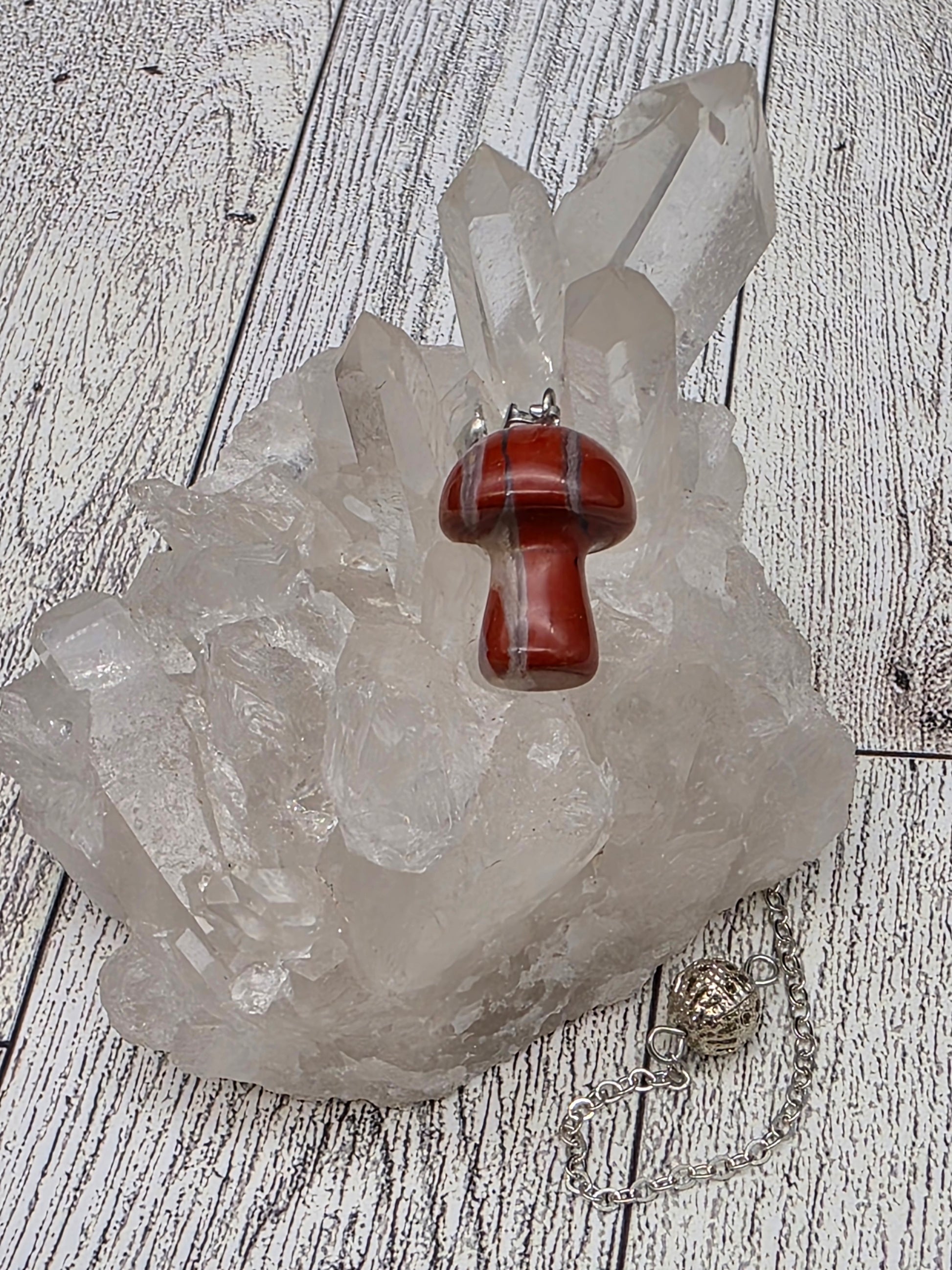 Unlock the magic of change and discovery with our Crystal Mushroom Pendulum. This mushroom‑shaped pendulum invites you to open new doors, explore opportunities, and connect deeply with your inner guidance. Whether you’re using it for divination, energy clearing or simply as a tactile reminder of your path forward, it’s a meaningful tool for growth and expansion.