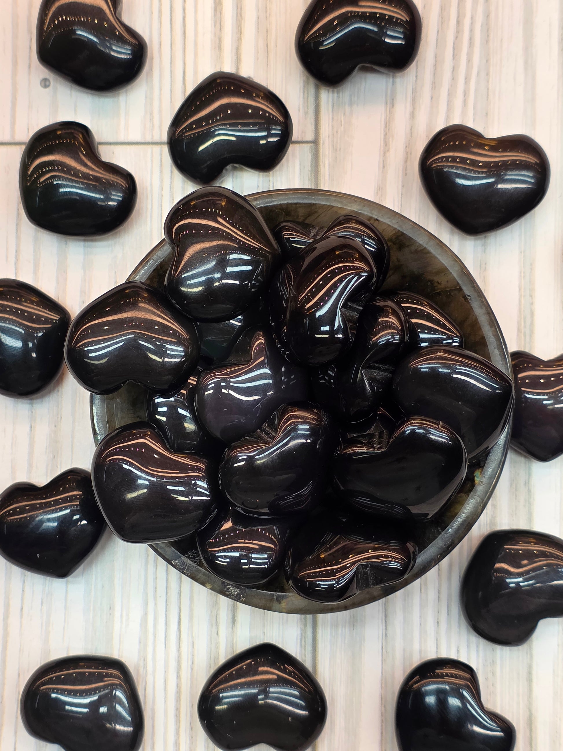 These charming mini hearts are carved from rainbow obsidian, revealing flashes of iridescent color whenever they catch the light. Obsidian is prized for its grounding and protective qualities, and the rainbow variety adds an extra layer of beauty and energy. Each heart is believed to support healing across all chakras by gently clearing blockages and balancing your entire energetic field. Perfectly sized for carrying in a pocket, placing on your altar, or gifting to a loved one, these hearts bring both elegance and powerful crystal support into your daily life.