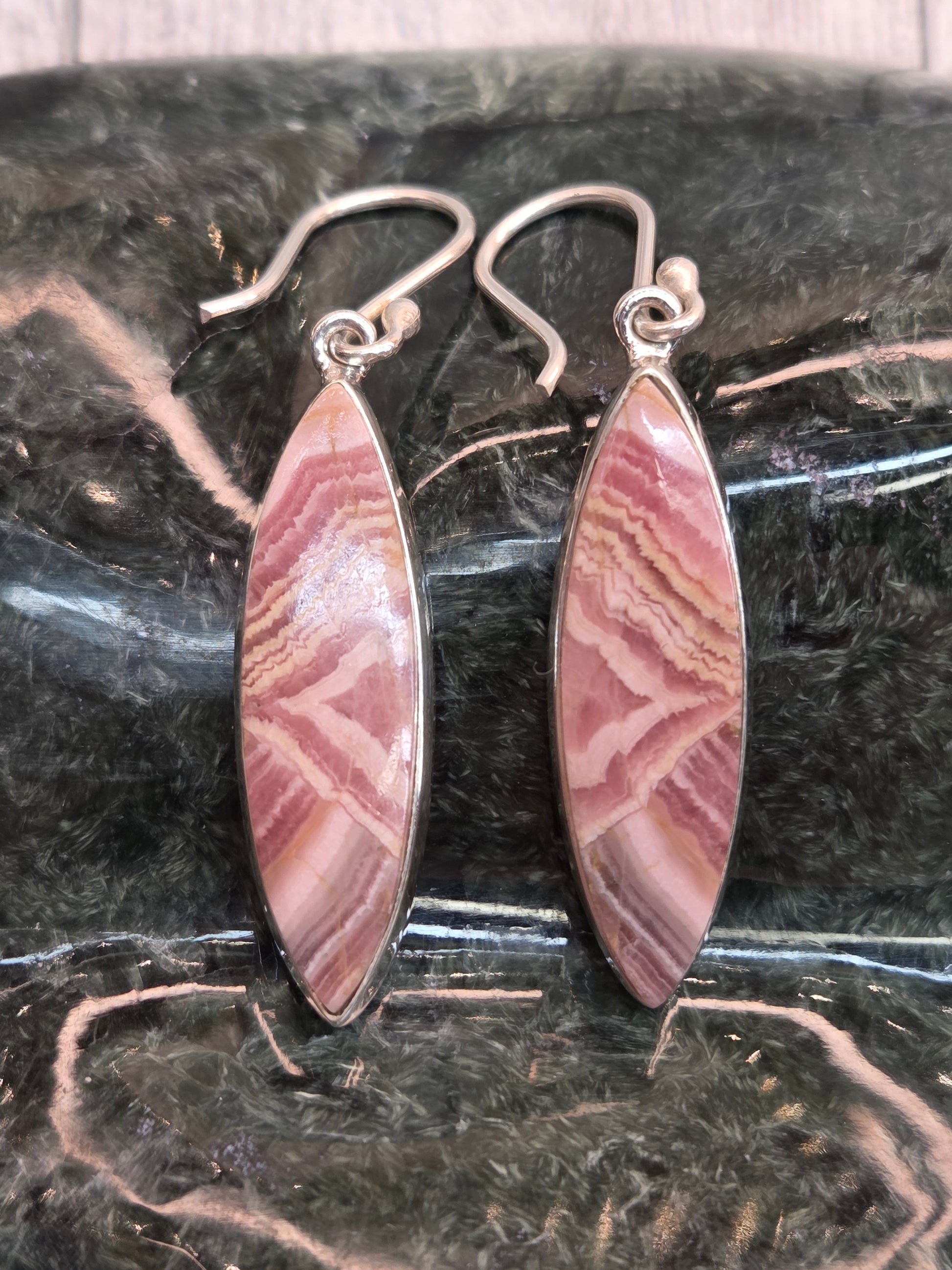 This particular form of rhodochrosite is rare, having formed naturally in stalactite structures over thousands of years, making each pair a true gift from the Earth. These earrings are not only a beautiful expression of loving energy, but also a reminder to embrace your emotional journey with gentleness and strength.