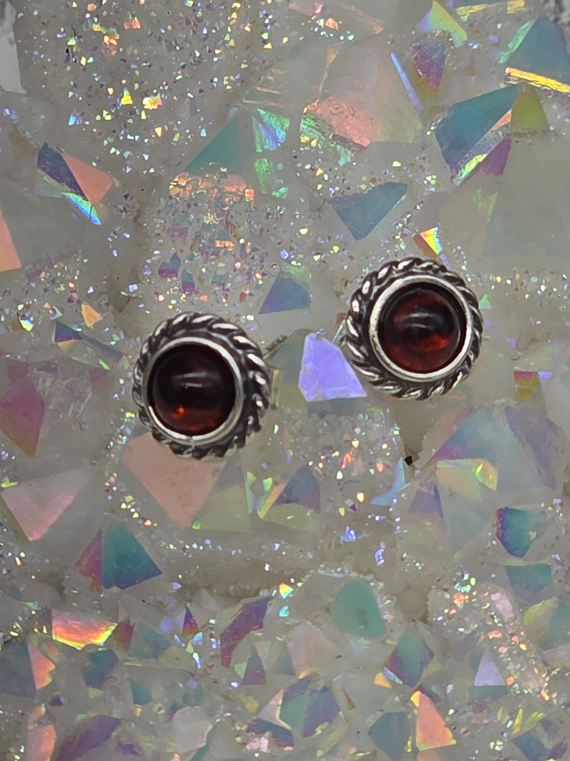 These amber round post earrings are such a perfect everyday pair, dainty, polished, and easy to wear with everything. The amber rounds are set in a braided style sterling silver frame that adds just the right amount of detail, giving them a slightly vintage, heirloom feel while still staying simple. They sit nicely on the ear, making them great for daily wear when you want something classic and warm without being too big.