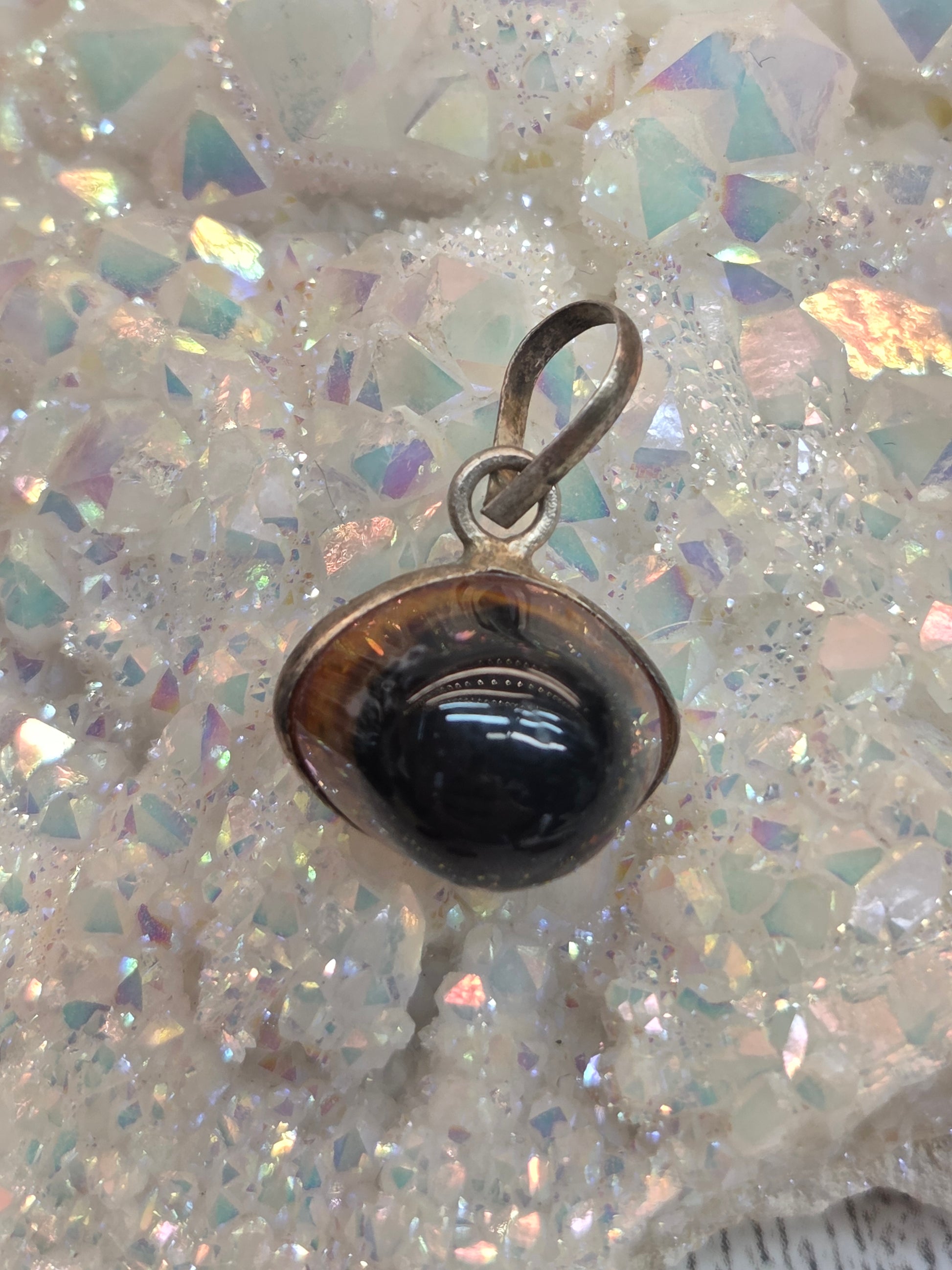 This unique Agate Eye pendant is set in heirloom-quality sterling silver and is a striking piece of natural formation. Often called the “watchful stone,” Agate Eye is prized for its concentric patterns that resemble an eye, symbolizing protection, heightened perception, and spiritual awareness.