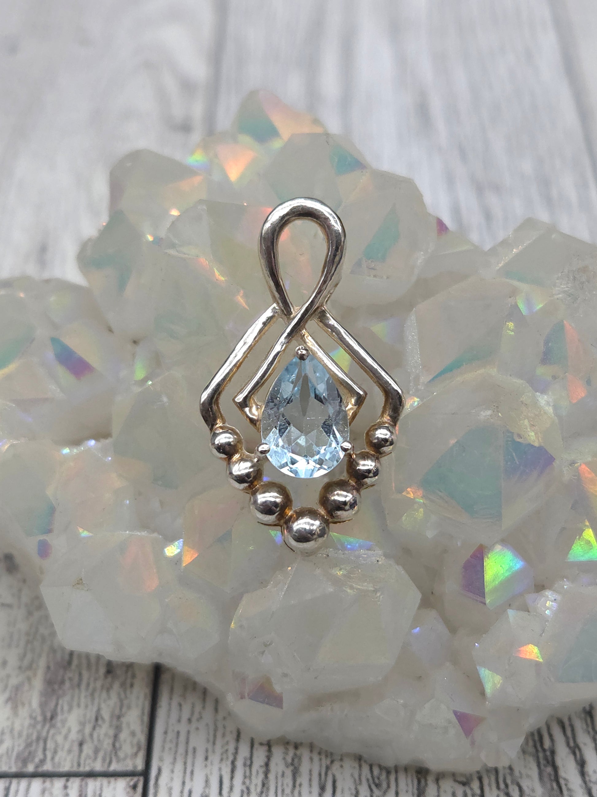 This stunning Swiss Blue Topaz Teardrop Pendant is set in sterling silver and framed with delicate silver beading, offering timeless elegance with a vibrant pop of color. Swiss Blue Topaz is known for its bright, clear energy that promotes communication, mental clarity, and emotional balance. It's a powerful stone for those seeking to express their truth, strengthen their voice, and align with calm, confident energy. This elegant pendant is both eye-catching and energetically supportive, perfect for everyday wear or special occasions.